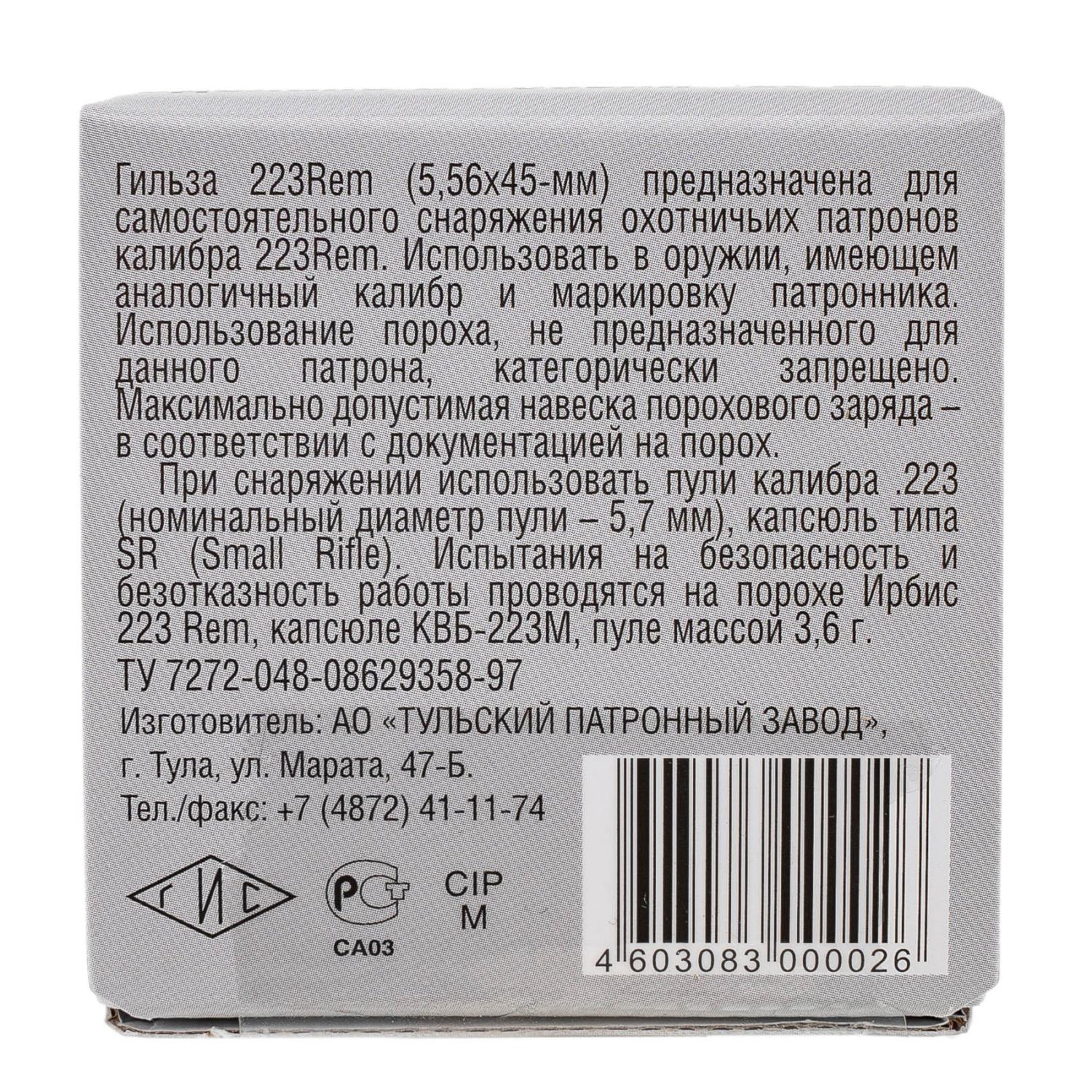 Гильза 223Rem ТПЗ (Tulammo) лат. некапс. (Боксер) 25шт/пач 300шт/кор * / 4dealer.ru