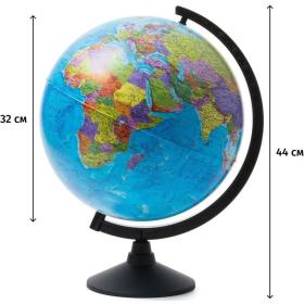 Глобус Globen Классик политический 32 см<br><br> Глобус — идеальное учебное пособие для изучения географии в школе и дома. На карту глобуса нанесены страны, границы, города, континенты, моря, океаны, глубины и другая полезная информация. Подставка глобуса выполнена из высококачественного пластика чёрного цвета. Размер глобуса: 44×35 см.