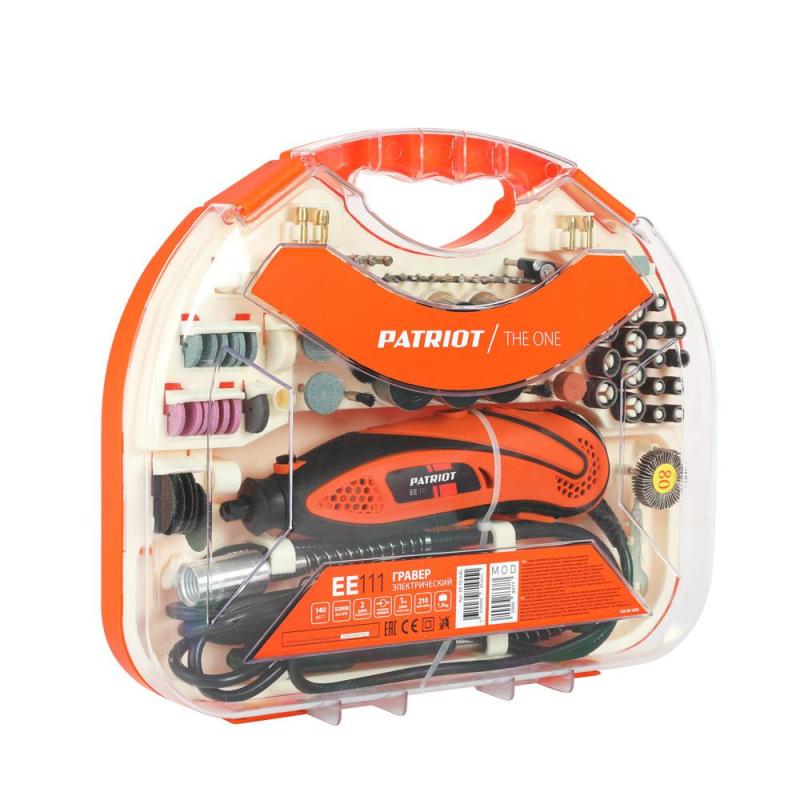 Гравер Patriot с надежным электродвигателем и эффективной системой охлаждения способен справится с широким кругом задач, таких как резка, полирование, абразивная обработка, гравирование, шлифование и чистка. В комплект поставки инструмента входят наиболее распространенные насадки для проведения основных видов работ.— Гибкий вал в комплекте— 210 сменных аксессуаров— Кейс для хранения и транспортировки инструмента и принадлежностей.— Блокировка вала инструмента позволяет быстро заменять оснасткуВнешний вид и/или характеристики товара могут быть изменены производителем в соответствии с производственным процессом.