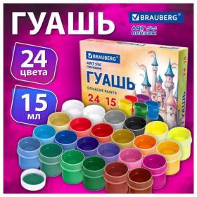 Гуашь классическая BRAUBERG идеально подходит для творчества и декоративно-оформительских работ. Хорошо наносится на бумагу, картон, дерево, стекло, керамику.В наборе – 24 ярких и насыщенных цветов: белый 2 шт, бежевый, лимонный, желтый, темно-желтый, оранжевый, розовый, красный, рубиновый, желто-зеленый, темно-зеленый, изумрудный, бирюзовый, голубой, синий, ультрамарин, фуксия, фиолетовый, охра, коричневый, красно-коричневый, серый, черный.