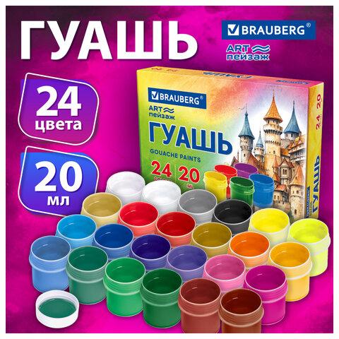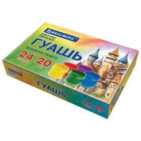 Гуашь классическая BRAUBERG идеально подходит для творчества и декоративно-оформительских работ. Хорошо наносится на бумагу, картон, дерево, стекло, керамику.В наборе – 24 ярких и насыщенных цветов: белый 2 шт, бежевый, лимонный, желтый, темно-желтый, оранжевый, розовый, красный, рубиновый, желто-зеленый, темно-зеленый, изумрудный, бирюзовый, голубой, синий, ультрамарин, фуксия, фиолетовый, охра, коричневый, красно-коричневый, серый, черный.