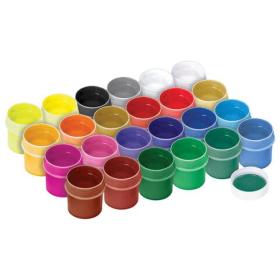 Краски полностью безопасны в использовании, не токсичны, без резкого запаха. Гуашь обладает высокой светостойкостью и укрывистостью, легко смешивается и размывается водой, хорошо наносится, без труда удаляется с рук и одежды. Краски разлиты в пластмассовые герметичные баночки объемом 20 мл. Общий объем – 480 мл.
