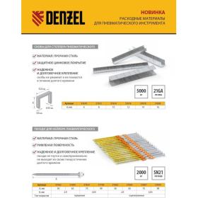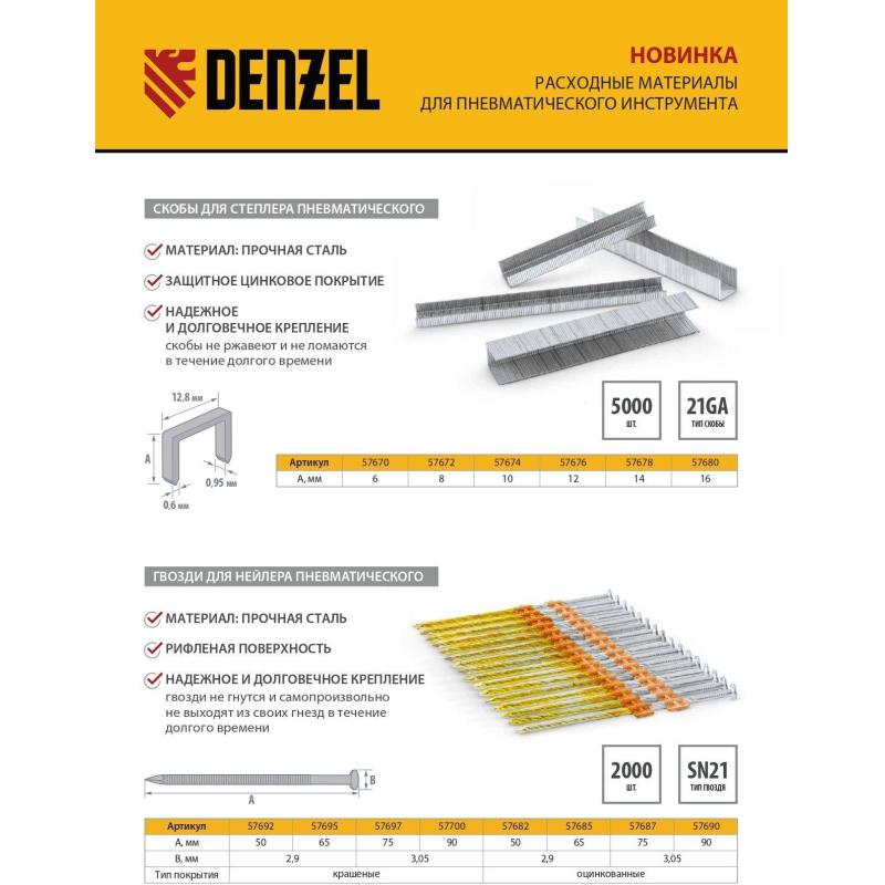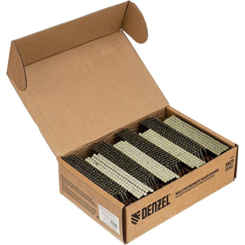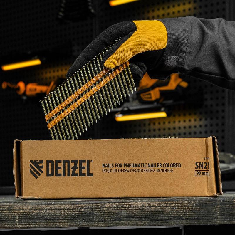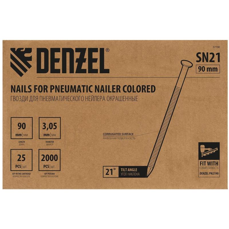 Гвозди электроустановочные Denzel 3.05х90 мм 2000 штук (57700)Гвозди Denzel 57700 типа SN21, длиной 90 мм и диаметром 3.05 мм, с крашеной поверхностью - расходники для пневматического нейлера. Используются для скрепления различных материалов, будут полезны во время сборочных и отделочных работ.Преимущества- Прочность - крепежные элементы изготовлены из стали.- Надежное и долговечное соединение - гвозди не гнутся, рифленая рабочая часть исключает их самопроизвольный выход из своих гнезд.- Удобная комплектация - запаса из 2000 шт. хватит для выполнения большого объема работ.Внешний вид и/или характеристики товара могут быть изменены производителем в соответствии с производственным процессом.