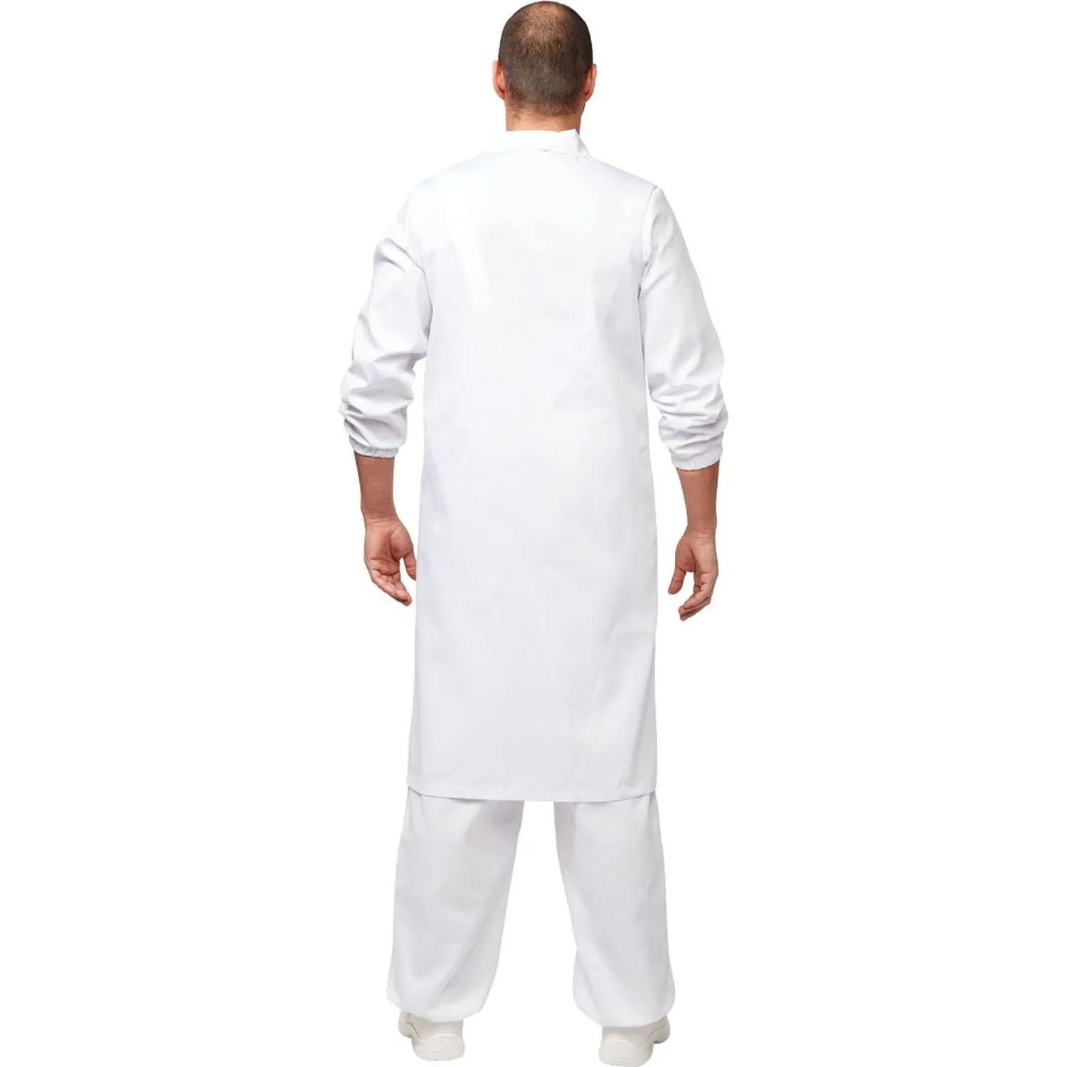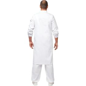 Халат для пищевого производства у17-ХЛ белый оптима (размер 56-58, рост 182-188) предназначен для предприятий пищевой промышленности, лабораторий, производственных участков и зон с повышенными санитарно-гигиеническими требованиями. <br><br>Модель выполнена в размере 56–58, рост 182–188. Рекомендуется для использования совместно с утеплёнными жилетами у17-ЖЛ и универсальными брюками у17-БР. В коллекции у17 представлены также куртки у17-КУ мужской и женской линеек. <br><br>Описание материалов.<br>Изделие выполнено из смесовой ткани саржевого переплетения (65% полиэстер, 35% хлопок) плотностью 150 г/кв.м. Ткань отличается лёгкостью и износостойкостью. <br><br>Особенности конструкции.<br>Модель выполнена в прямом силуэте, с центральной потайной застёжкой на кнопки до низа. Воротник отложной. Рукава втачные, длинные, с манжетами по низу, собранными на эластичную ленту. На левой полочке расположен один боковой и один нагрудный потайной карман с клапаном. <br><br>Рекомендации по уходу.<br>Рекомендуется машинная стирка при температуре не выше 40°C.<br><br>Соответствует стандартам: ТР ТС 019/2011, ГОСТ 12.4.280-2014. <br><br>Подобрать размер <br><br>Цвет изделия на изображении может отличаться от оригинала из-за особенностей цветопередачи экрана.