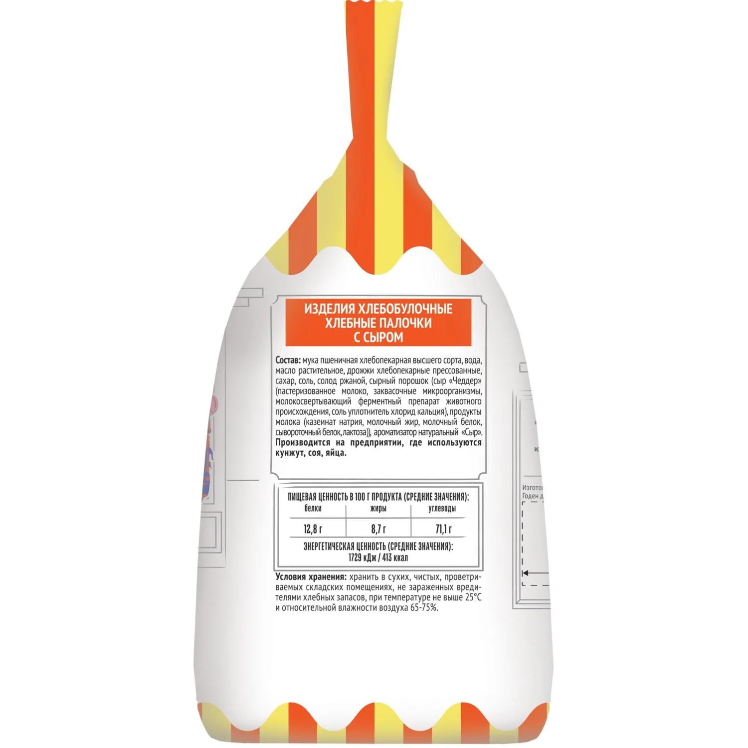 Хлебные палочки Семейка ОЗБИ с сыром 150 г (10 штук в упаковке)<br><br>Состав: мука пшеничная хлебопекарная высшего сорта, вода, масло растительное, дрожжи хлебопекарные прессованные, сахар, соль, солод ржаной, сырный порошок (сыр «Чеддер» (пастеризованное молоко, заквасочные микроорганизмы, молокосвертывающий ферментный препарат животного происхождения, соль уплотнитель хлорид кальция), продукты молока (казеинат натрия, молочный жир, молочный белок, сывороточный белок, лактоза)), ароматизатор натуральный «сыр». Производится на предприятии, где используются кунжут, соя, яйца. <br>Пищевая ценность: белки — 12,8 г; жиры — 8,7 г; углеводы — 71,1 г.<br>Энергетическая ценность: 1729 кДж/413 ккал. <br>Срок хранения 180 суток. <br>Хранить в хорошо проветриваемых сухих чистых помещениях, не имеющих посторонних запахов, не заражённых вредителями хлебных запасов при температуре 18 С и относительной влажности не более 75 %. <br>Страна производства: Россия. <br>Производитель: ЗАО «ОЗБИ».