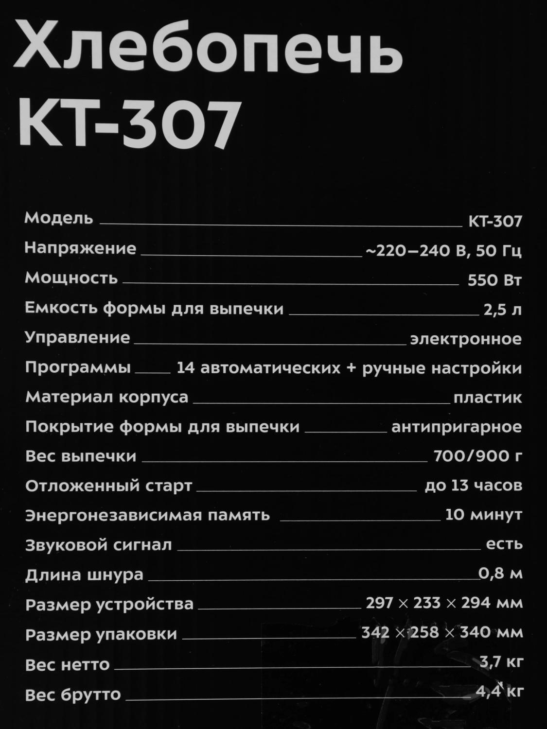 | Программы | безглютеновый хлеб, варенье/джемы, выпечка/кексы/шарлотки, замес теста, йогурт, пшеничный хлеб, сладкий хлеб, французский хлеб, цельнозерновой хлеб |