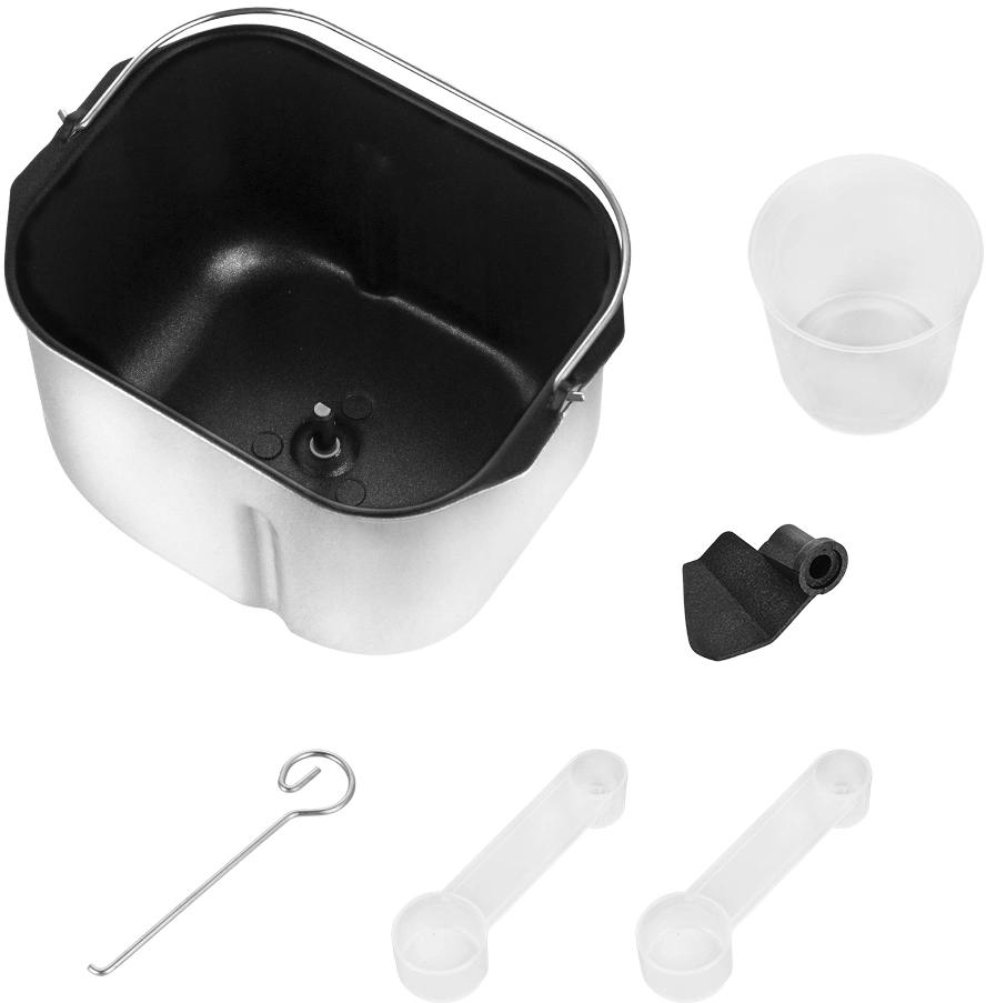 | Дополнительно в комплекте | 1 лопасть для замешивания теста, крюк для извлечения лопасти, мерная ложка, мерный стакан |
