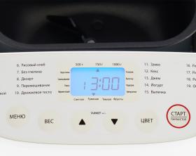 | Функции | выбор цвета корочки, поддержание температуры, регулировка веса выпечки, таймер отсрочки старта |
