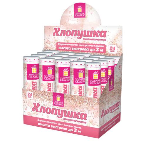 Пневматическая хлопушка не является пиротехникой и работает на основе энергии сжатого воздуха. Конфетти и серпантин ярких цветов можно использовать в помещении или на улице. Хлопушка подойдет для праздников, концертов, реквизита для фотосессии.Хлопушка высотой 20 см с фольгированным наполнителем в виде кругов цвета розовое золото является абсолютно безопасной. Выстрел осуществляется под действием сжатого воздуха. Не является пиротехникой. Средняя дальность выстрела – 2-3 м. Корпус хлопушки состоит из двух частей: пневматического баллона со сжатым воздухом и картонного цилиндра с наполнителем. Рекомендуется использовать хлопушку внутри больших помещений или на улице.