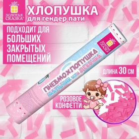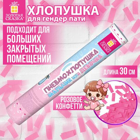 Пневматическая хлопушка не является пиротехникой и работает на основе энергии сжатого воздуха. Конфетти и серпантин ярких цветов можно использовать в помещении или на улице. Хлопушка подойдет для праздников, концертов, реквизита для фотосессии.Хлопушка высотой 30 см с бумажным наполнителем в виде прямоугольников розового цвета является абсолютно безопасной. Выстрел осуществляется под действием сжатого воздуха. Не является пиротехникой. Средняя дальность выстрела – 3-5 м. Корпус хлопушки состоит из двух частей: пневматического баллона со сжатым воздухом и картонного цилиндра с наполнителем. Рекомендуется использовать хлопушку внутри больших помещений или на улице.