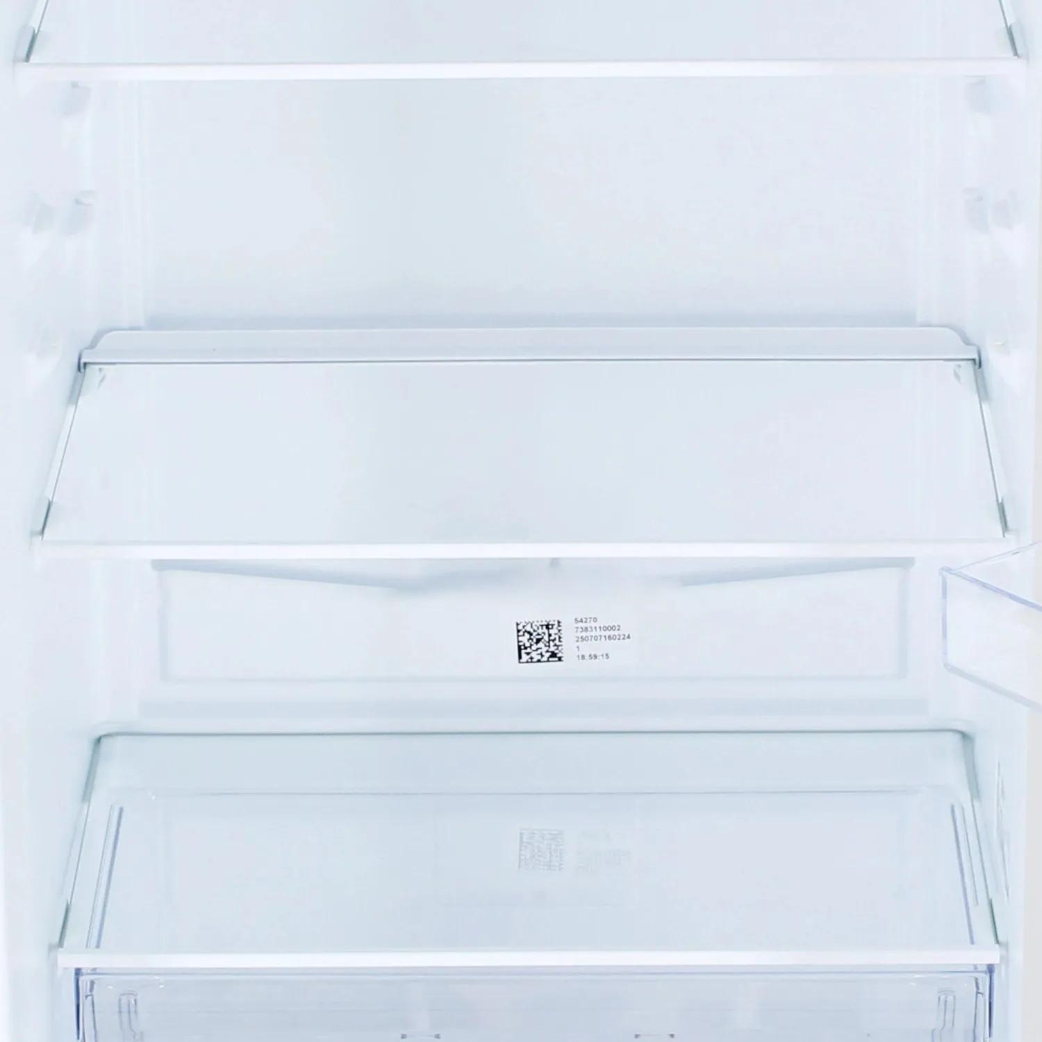 Внутреннее убранство включает полки из закаленного стекла высокой прочности. Они устойчивы к царапинам и способны выдерживать нагрузку до 25 кг, что позволяет без опасений ставить тяжелые кастрюли или банки. Гладкая поверхность полок легко очищается от загрязнений, обеспечивая гигиеничность хранения.