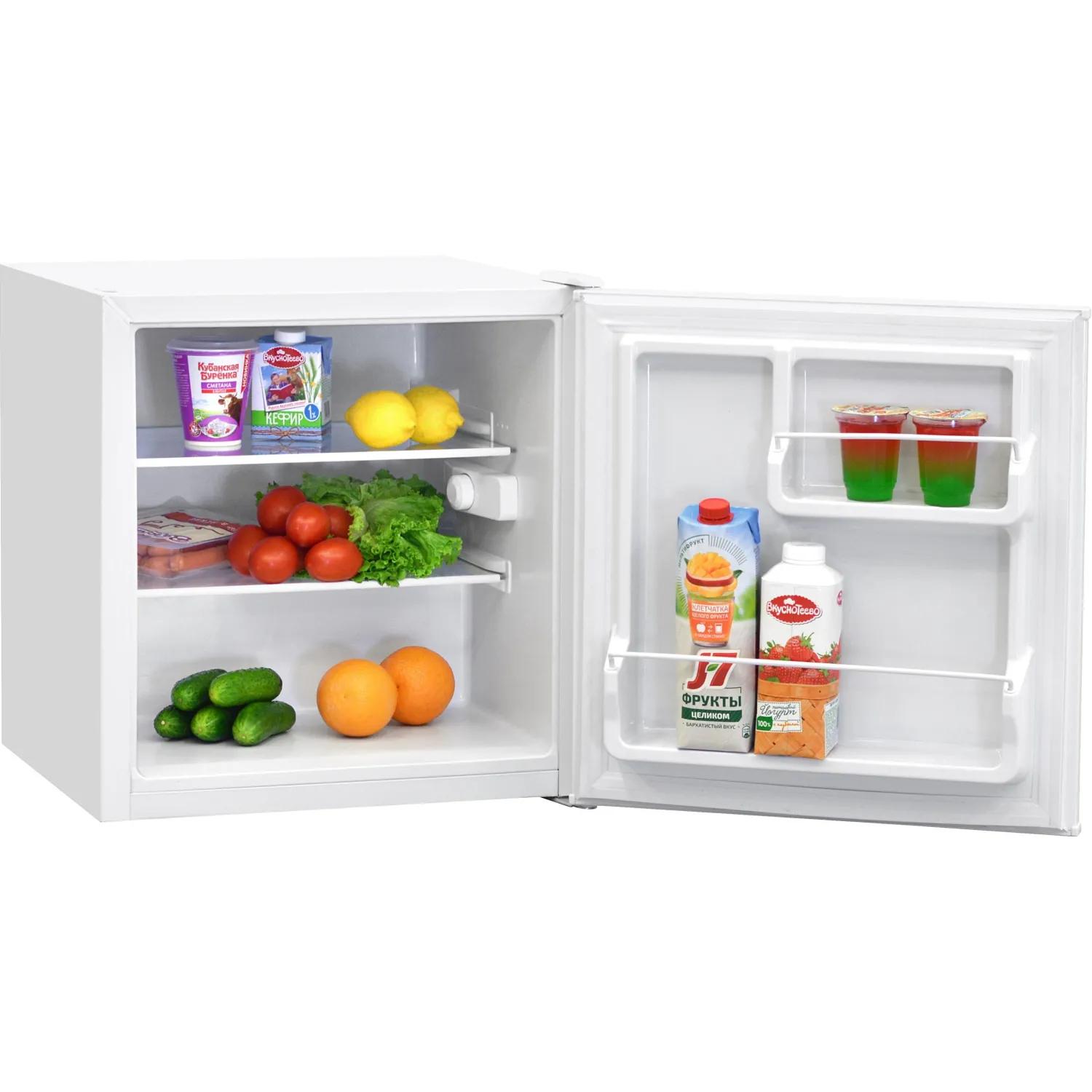 Холодильник однокамерный Nord NR 506 W белый<br><br>Компактный однокамерный холодильник NordfrostNR 506 W имеет общий объем 60 л и высоту 52,5 см. Диапазон температурного режима в холодильной камере от 0 до +8 °С. Корпус выполнен в белом цвете, поэтому выглядит стильно и привлекательно.<br><br>Внутри холодильника:<br>— 2 полки из закаленного стекла;<br>— 2 полки на дверце для бутылок с напитками, герметичных упаковок с сырами и йогуртами;<br>— механическое управление внутри камеры;<br>— ламинированная внутренняя поверхность с антибактериальным покрытием.<br><br>Мини-холодильник Nordfrost — идеальный вариант для размещения в гостинице, отеле, офисе, общежитии или на даче. Небольшие размеры модели и вес всего 20 кг позволяют поставить устройство под кухонную столешницу или спрятать в шкаф.<br><br>Дополнительные преимущества холодильников Nordfrost:<br>— холодильник с запененным испарителем легко моется и не требует разморозки. Кроме того, испаритель надежно защищен от механических повреждений;<br>— при необходимости дверь можно перенавесить для удобного открывания с нужной стороны;<br>— капельная система оттаивания;<br>— высокий класс энергоэффективности А+;<br>— низкий уровень шума до 39 дБ;<br>— горизонтальные интегрированные ручки.<br><br>Гарантия на холодильник Nordfrost — 2 года.<br><br>Внешний вид и/или характеристики товара могут быть изменены производителем в соответствии с производственным процессом.