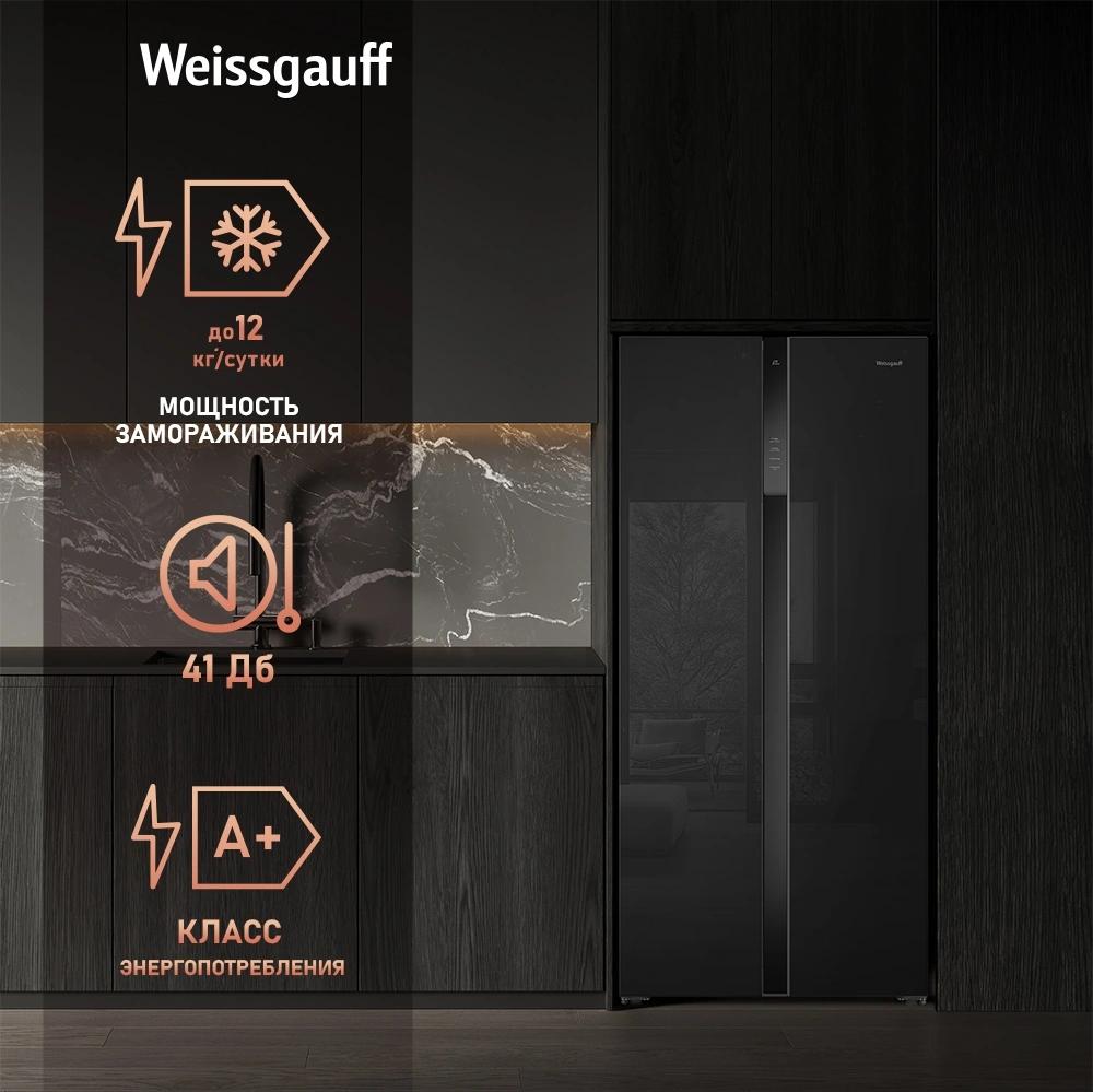 Холодильник Weissgauff WSBS 500 Inverter NoFrost 2-хкамерн. черный стекло инвертер / 4dealer.ru