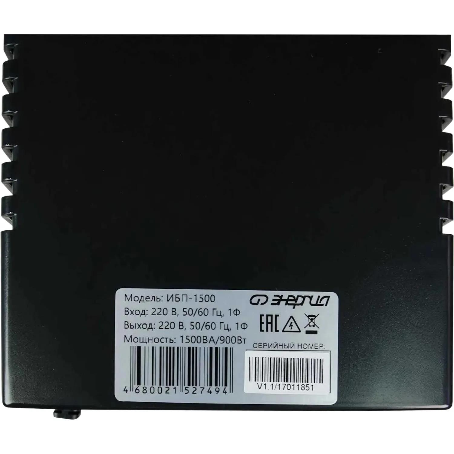 ИБП Энергия 1500 (Е0201-0025)<br><br>Время работы в режиме батарейной поддержки может отличаться в зависимости от мощности и вида нагрузки, состояния сети электропитания, срока службы батарей, температуры окружающей среды и т.д.<br><br>Внешний вид и/или характеристики товара могут быть изменены производителем в соответствии с производственным процессом.