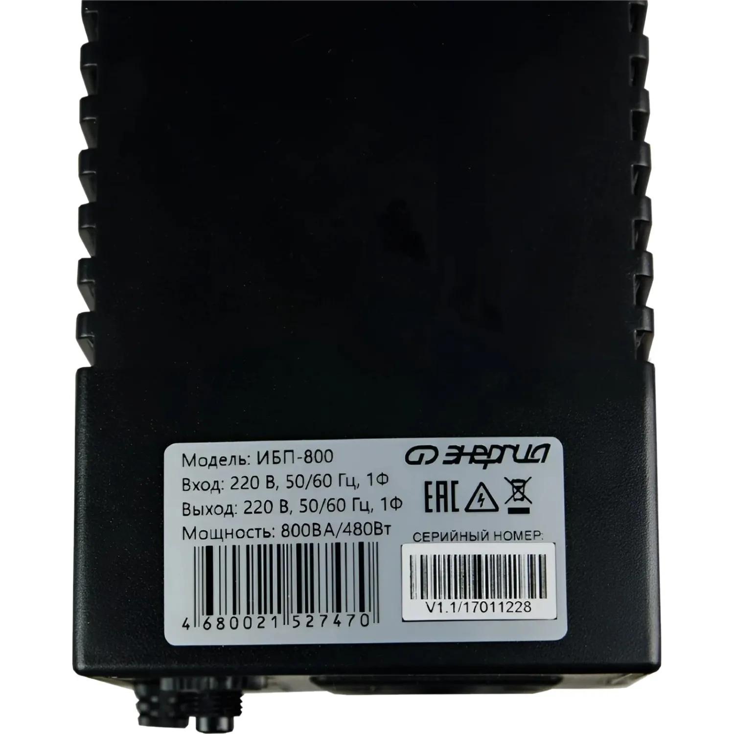 ИБП Энергия 800 (Е0201-0023)<br><br>Время работы в режиме батарейной поддержки может отличаться в зависимости от мощности и вида нагрузки, состояния сети электропитания, срока службы батарей, температуры окружающей среды и т.д.<br><br>Внешний вид и/или характеристики товара могут быть изменены производителем в соответствии с производственным процессом.