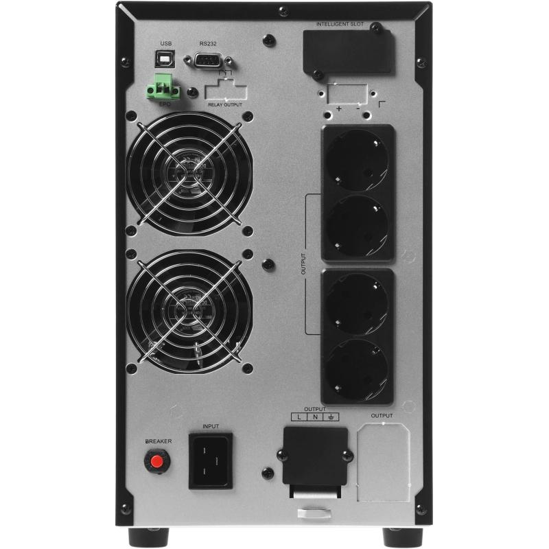 Innova TBE 3000 — источник бесперебойного питания (ИБП) с двойным преобразованием входного напряжения (онлайн) станет надежным защитником вашего оборудования. Этот онлайн ИБП мощностью 3000 ВА/2700 Вт разработан для обеспечения качественного электропитания чувствительных устройств, таких как персональные компьютеры, графические станции, мощные серверы, периферийная тех-ника, сетевое оборудование, системы NAS и лабораторные приборы.<br> <br> Этот однофазный ИБП с двойным преобразованием входного напряжения является надежным выбором для защиты вашего оборудования от перебоев в электроснабжении и обеспечения его стабильной работы. При отключении электричества в сети он используется как резервный источник питания, поэтому подключенные устройства в течение некоторого времени продолжат работать, и у вас будет возможность выключить их в штатном режиме и сохранить важную информацию.<br> <br> Корпус ИБП сделан из металла. На фронтальной панели предусмотрен ЖК-дисплей, на который выводится важная информация о состоянии ИБП и режиме, в котором он работает. Поставляется с установленными свинцово-кислотными АКБ, для начала работы достаточно включить ИБП в розетку.<br> <br> Для управления и связи с компьютером используются разъемы RS232 и USB-B. При подключении сетевой карты SNMP (приобретается дополнительно) можно осуществлять мониторинг и контроль за ИБП с помощью удаленного управления, например, запланированные отключения и перезагрузка. Расписание включения и выключения ИБП можно настроить с помощью программы Power Master+. Программное обеспечение обеспечивает удаленный доступ к важной информации о питании, включая состояние батареи, уровни нагрузки и информацию о времени работы, ведение журнала событий, внутренние отчеты и анализ, удаленное управление и многое другое.<br> <br> Innova TBE 3000 сохраняет работоспособность при температуре от 0 до 40 °C и при относительной влажности от 20 до 90 %. Для защиты от перегрева предусмотрен вентилятор, работающий с низким уровнем шума. Также в этой модели предусмотрена защита от короткого замыкания, перегрузки и высоковольтных выбросов.<br> <br> Комплектация:<br> ИБП Innova TBE 3000 — 1 шт.<br> Входной кабель питания х 1 шт.<br> Выходной кабель питания х 2 шт.<br> Краткое руководство пользователя х 1 шт.<br> <br> Время работы в режиме батарейной поддержки может отличаться в зависимости от мощности и вида нагрузки, состояния сети электропитания, срока службы батарей, температуры окружающей среды и т.д.<br> <br> Внешний вид и/или характеристики товара могут быть изменены производителем в соответствии с производственным процессом.