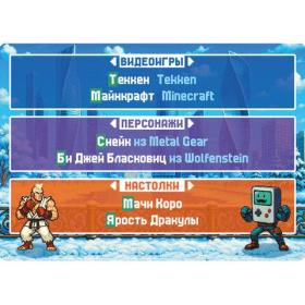 "В двух словах: Игры" – это увлекательная настольная игра, где вам предстоит объяснять названия и имена всего двумя словами, начинающимися на определённые буквы. В основе игры три раунда, и каждый – это новое испытание для вашей смекалки и эрудиции. Выбирайте карту, смотрите на цветные буквы невыбранных квестов и придумывайте ассоциации, которые приведут к победе.