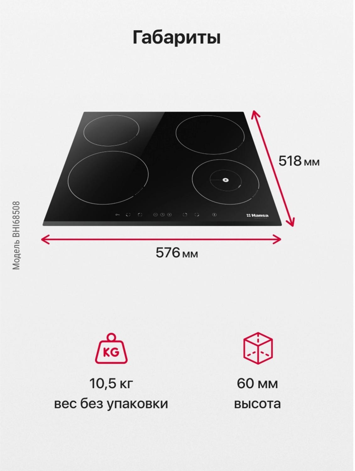 | Мощность (правой дальней конфорки) | 2/3 кВт |