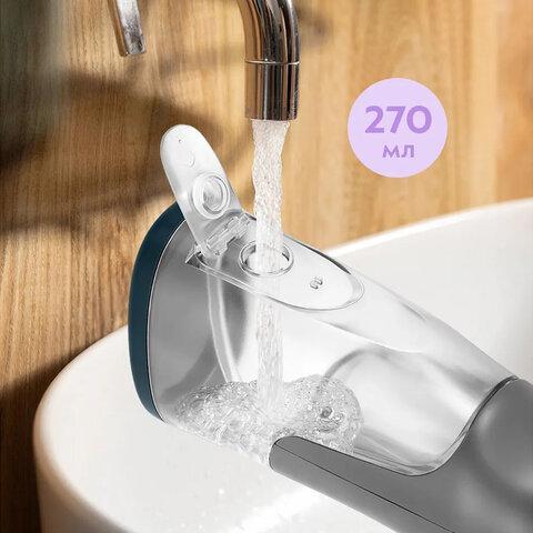 Ирригатор КТ-5942 — это прибор для ухода за полостью рта. Ирригатор может частично заменить зубную нить или флоссер. Тонкая и сильная струя воды вымывает остатки еды и налёт из межзубного пространства и десневых карманов.У ирригатора есть резервуар для воды ёмкостью 270 мл, которого хватает для тщательной обработки полости рта. Использовать можно не только воду, но и специальные растворы для ирригаторов. Прибор работает в 5 режимах. Если вы до этого не пользовались ирригатором, то начните режима «Мягко». Когда дёсны привыкнут, можно выбрать режим с большей силой струи. Прибор автоматически отключается через 1,5 минуты. В комплекте идёт шнур для зарядки.