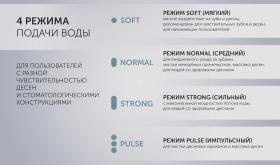 | Особенности | Складной портативный ирригатор. Макс. давление струи - 720 кПа. Объем резервуара 200 мл. |