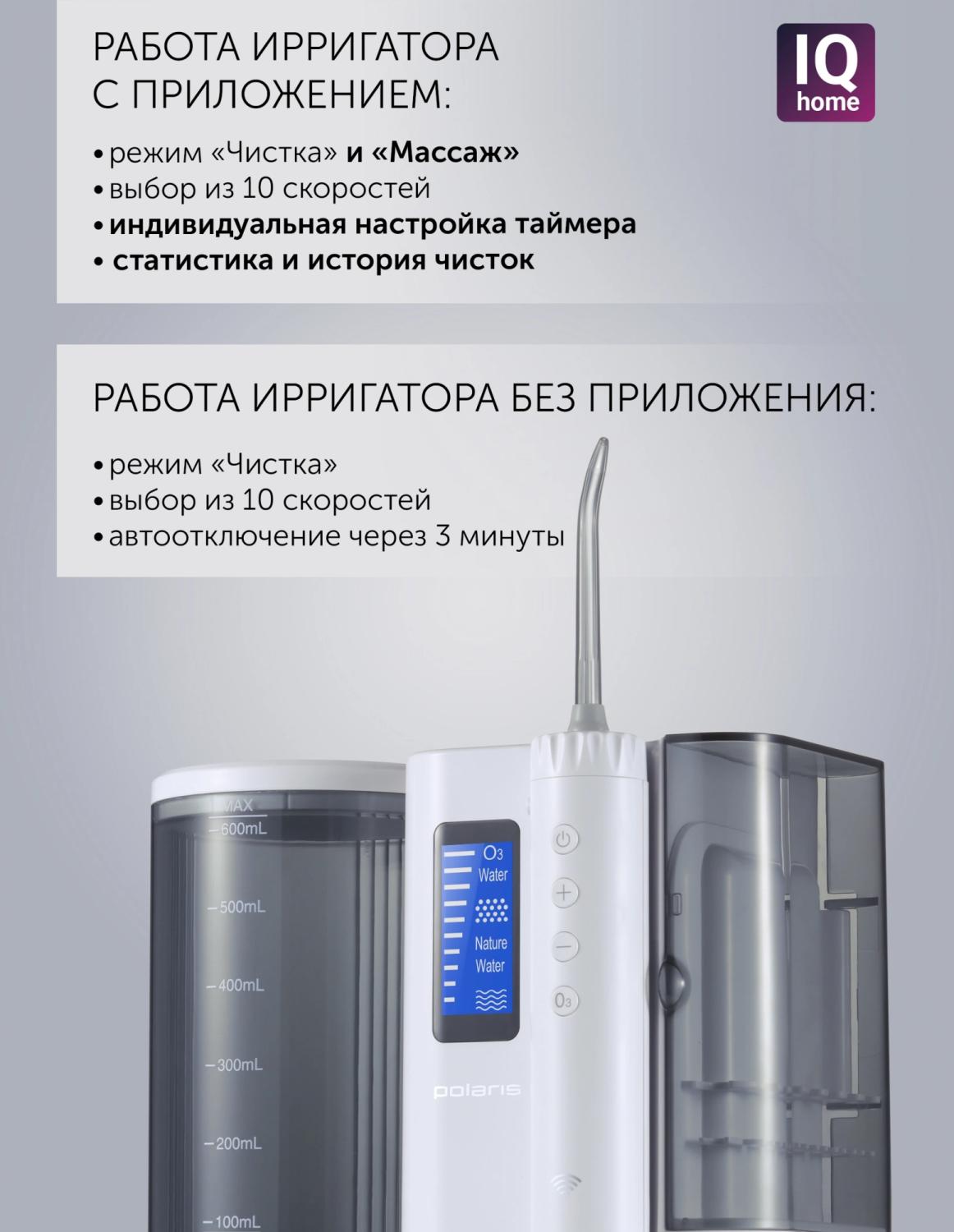 Ирригатор Polaris PWF 2005 WIFI IQ Home импульсн. 8насад. белый / 4dealer.ru