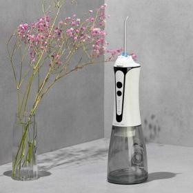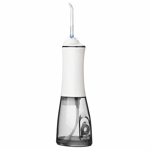 Ирригатор оснащен вместительным резервуаром на 300 мл, вращающимся на 360° креплением насадок и прочным дорожным чехлом для хранения и переноски.