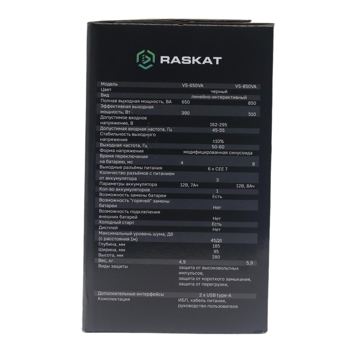 Источник бесперебойного питания ИБП Raskat VS-650VA 650VA, 390Вт, 6хCEE 7 / 4dealer.ru