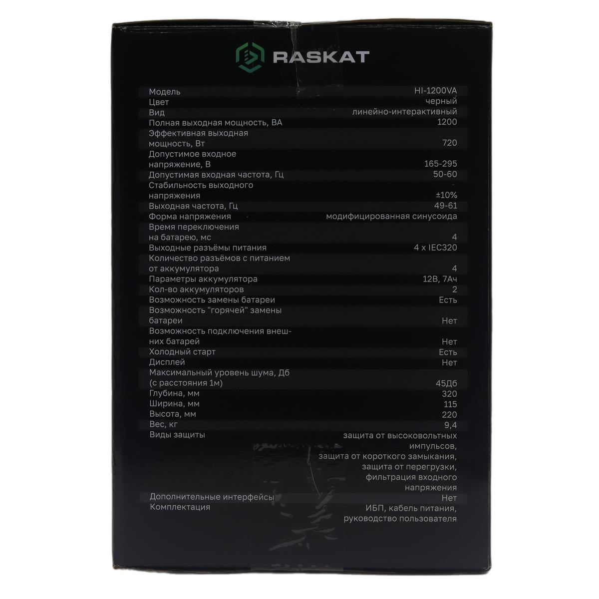 Источник бесперебойного питания (ИБП) Raskat 32" I32U6D 1200VA, 4xIEC320 / 4dealer.ru