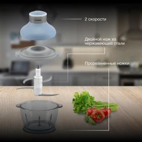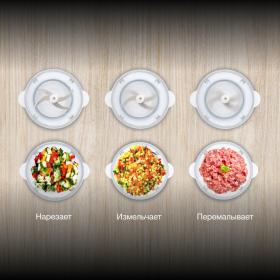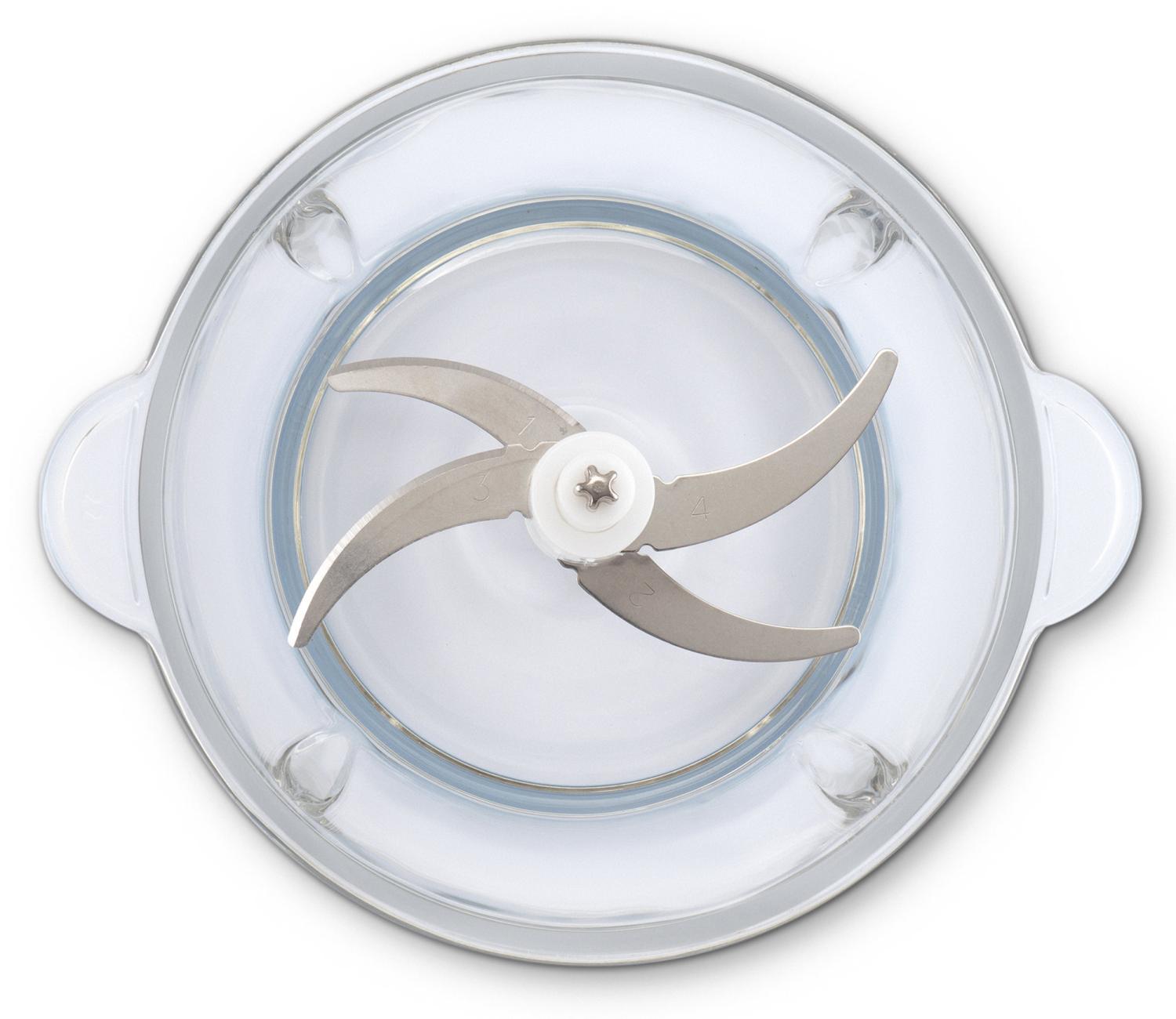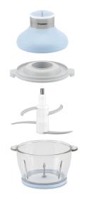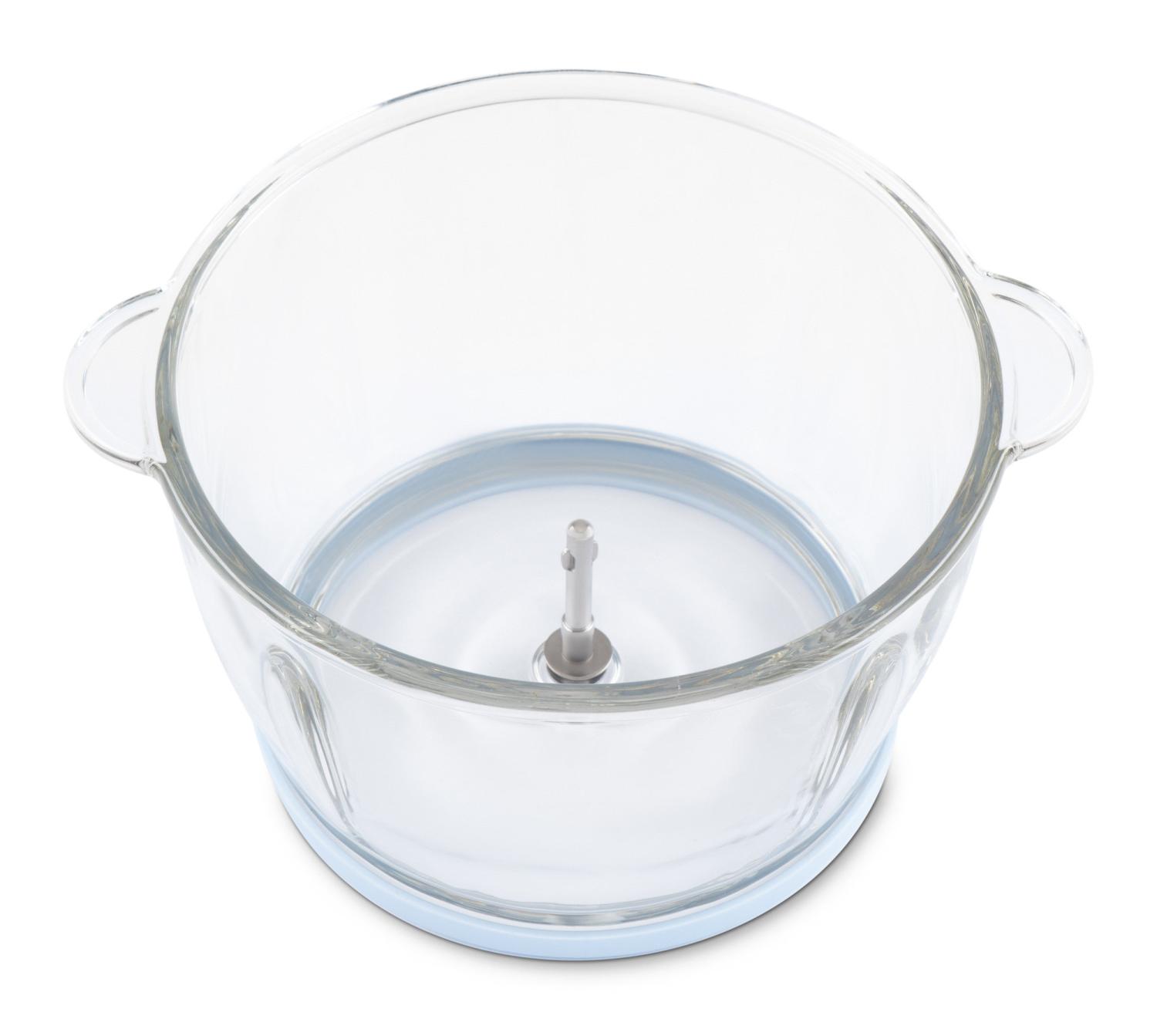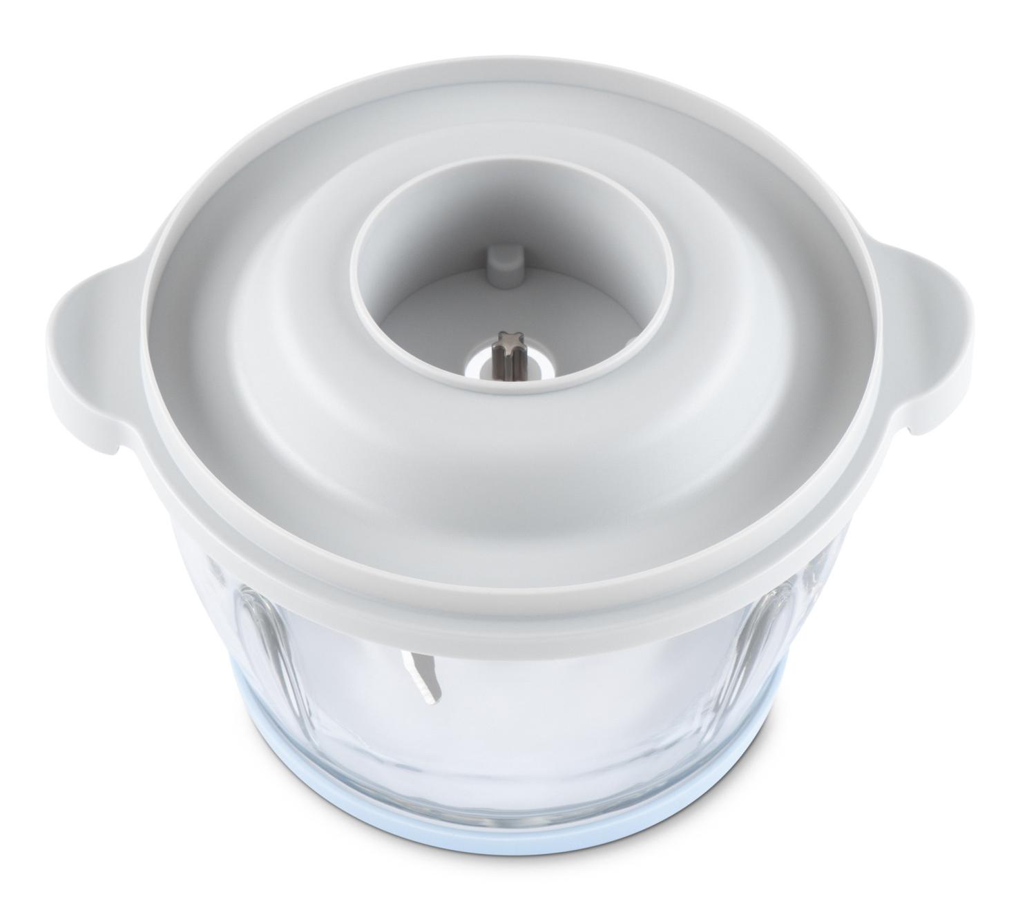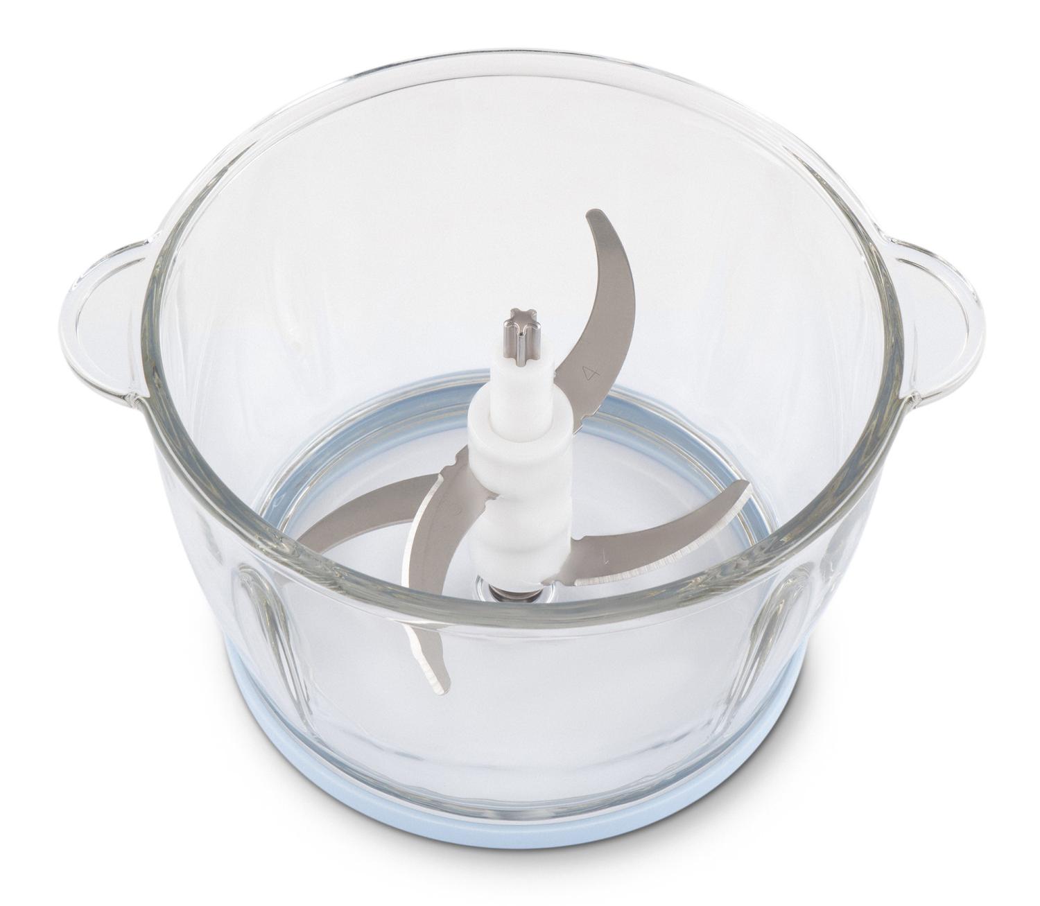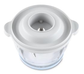 | Комплектация | измельчитель (моторный блок; нескользящая силиконовая основа; защитная крышка; стеклянная чаша; лезвия из нержавеющей стали х2; пластиковая лопатка); инструкция с гарантийным талоном |