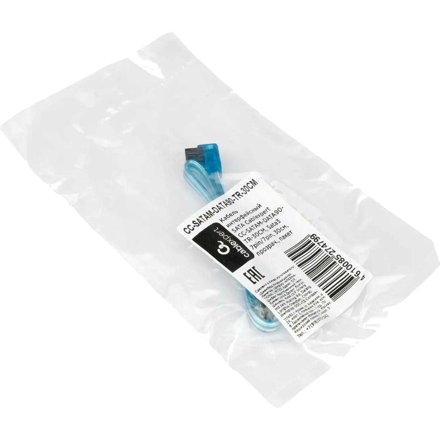 Кабель Cablexpert SATA - SATA, 0.3м (CC-SATAM-DATA90-TR-30CM) / 4dealer.ru