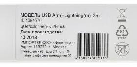 Кабель Digma LIGHT-2M-BRAIDED-BLK USB (m)-Lightning (m) 2м черный / 4dealer.ru