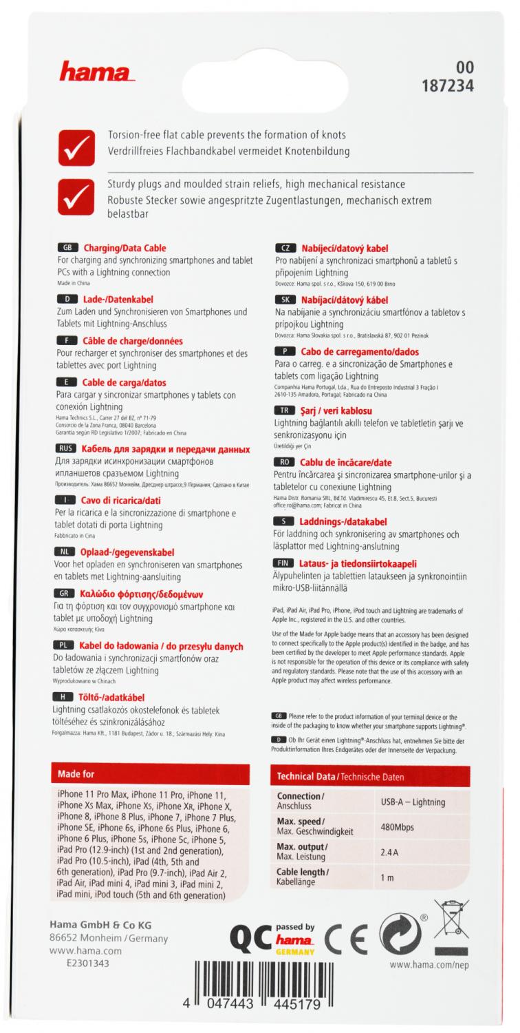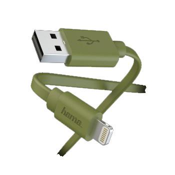 Кабель Hama 00187234 USB (m)-Lightning (m) 1м зеленый плоский