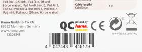 Кабель Hama 00187234 USB (m)-Lightning (m) 1м зеленый плоский / 4dealer.ru
