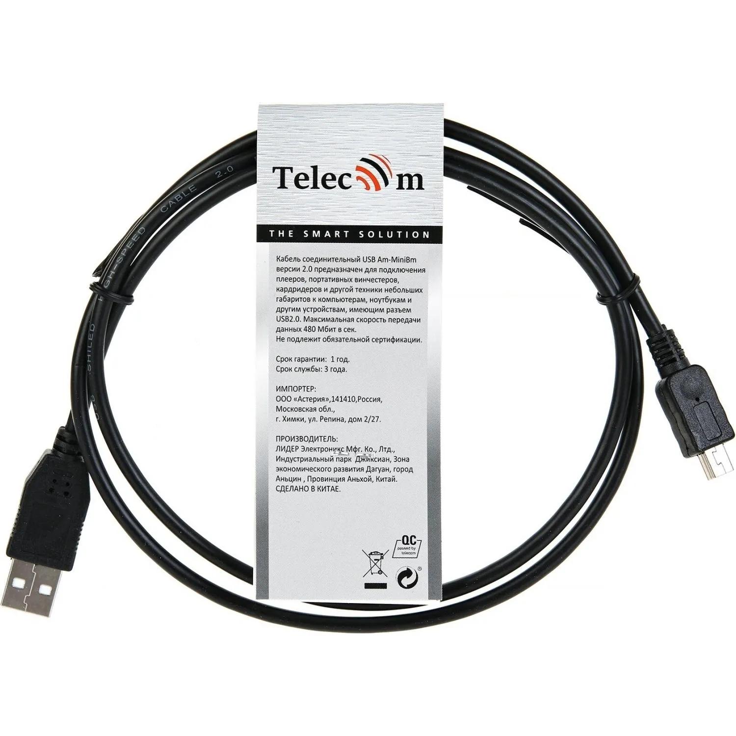 Кабель Telecom USB Type-A — mini USB 1 метр (TC6911BK-1.0M)<br><br>Внешний вид и/или характеристики товара могут быть изменены производителем в соответствии с производственным процессом.