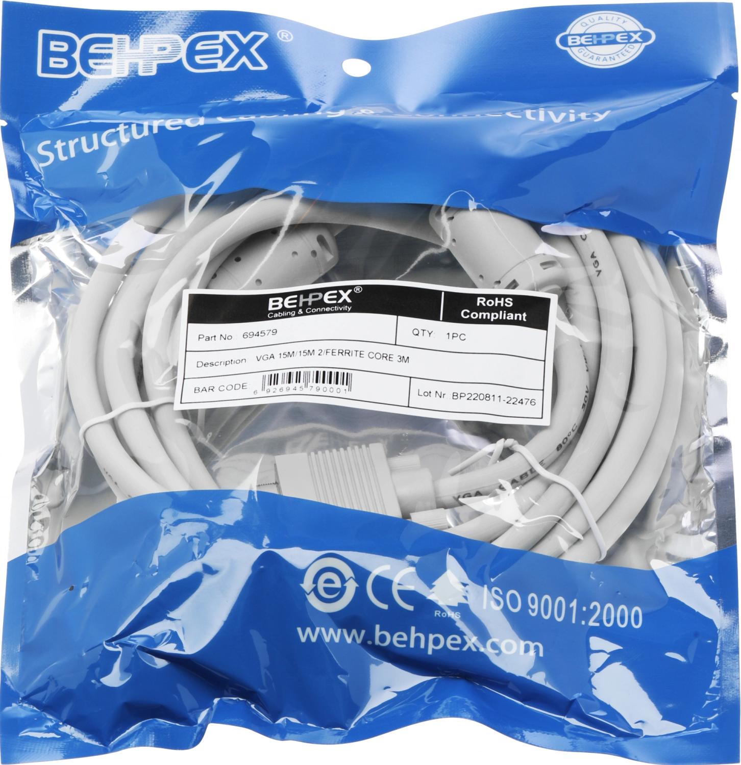 Кабель VGA (m) VGA (m) 3м феррит.кольца