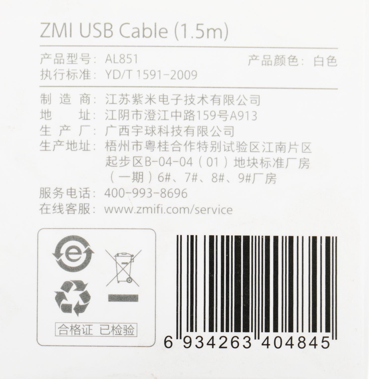 Кабель ZMI AL851 USB (m)-Lightning (m) 1.5м белый коробка (упак.:1шт) / 4dealer.ru