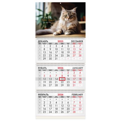 Квартальный календарь BRAUBERG "Кот" предназначен для делового планирования.Офисный календарь на 2026 год на 3-х гребнях. Для удобства планирования состоит из 3-х блоков с календарными сетками на три месяца - предыдущего, текущего и последующего. Блок календаря напечатан на офсетной бумаге плотностью 65 г/м2. Подложка изготовлена из мелованного картона плотностью 235 г/м2. Курсор-бегунок выделяет текущую дату. Вертикальное расположение.