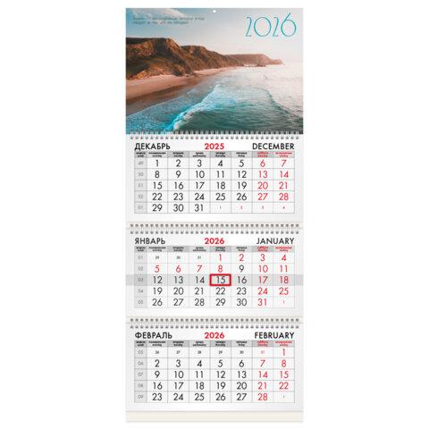 Квартальный календарь BRAUBERG "Пляж" предназначен для делового планирования.Офисный календарь на 2026 год на 3-х гребнях. Для удобства планирования состоит из 3-х блоков с календарными сетками на три месяца - предыдущего, текущего и последующего. Блок календаря напечатан на офсетной бумаге плотностью 65 г/м2. Подложка изготовлена из мелованного картона плотностью 235 г/м2. Курсор-бегунок выделяет текущую дату. Вертикальное расположение.
