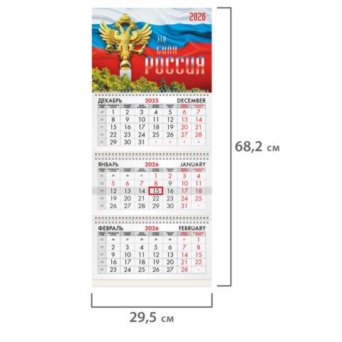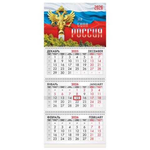 Квартальный календарь BRAUBERG "Символика России" предназначен для делового планирования.Офисный календарь на 2026 год на 3-х гребнях. Для удобства планирования состоит из 3-х блоков с календарными сетками на три месяца - предыдущего, текущего и последующего. Блок календаря напечатан на офсетной бумаге плотностью 65 г/м2. Подложка изготовлена из мелованного картона плотностью 235 г/м2. Курсор-бегунок выделяет текущую дату. Вертикальное расположение.