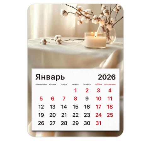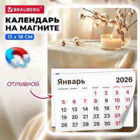 Календарь отрывной на магните BRAUBERG предназначен для делового и бытового планирования.12 листов календарной сетки на офсетной бумаге плотностью 80 г/м2 в 2 краски. Подложка изготовлена из импортного картона плотностью 325 г/м2. Сильный магнит на обратной стороне. Размер – 13х18 см. Поставляется в индивидуальной упаковке (полибег) с европодвесом.
