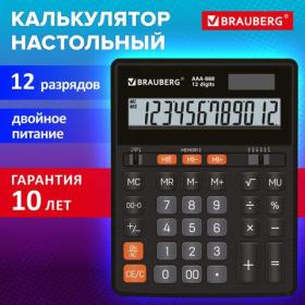 Настольный калькулятор BRAUBERG AAA-888. Большой дисплей с увеличенными символами, надежный корпус и оптимальный набор наиболее используемых функций для эффективной работы.Калькулятор поддерживает ключевые арифметические действия: возведение в степень, вычисления с процентами, извлечение квадратного корня, запоминание промежуточных результатов. Подходит для бухгалтеров благодаря наличию клавиш двойной памяти, «00» и MU для расчетов налогов и торговой наценки. С переключателями округления и положения десятичного знака. Большой двенадцатиразрядный дисплей с акриловым экраном комфортно отображает большие символы с высокой точностью округления. Встроенный аккумулятор и солнечная батарея позволяют калькулятору работать при любом освещении, а клавиша выключения OFF и функция автоматического отключения (через 8-10 минут бездействия) позволяют максимально продлить срок его службы без замены батареи.