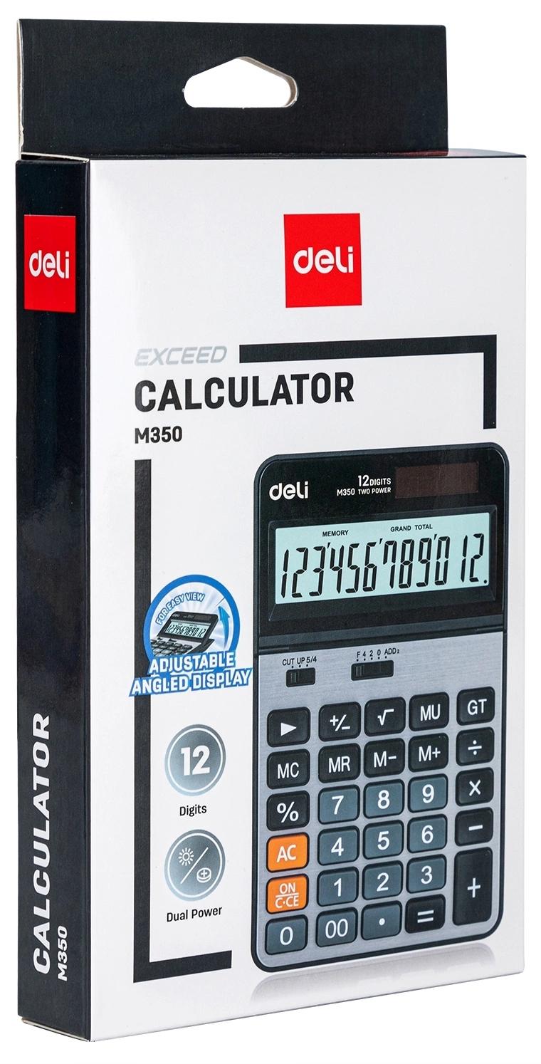 | Описание | Калькулятор настольный Deli, EM350, 12 символов, 2 источника питания, металлический, серебристый |