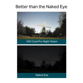 - Цветное ночное видение: круглосуточное цветное изображение с разрешением 4 Мп даже при уровне освещённости 0.0005 лк возможно без использования дополнительного освещения благодаря использованию диафрагмы размером f/1.0 и прогрессивной матрице размером 1/1.8 дюйма.
