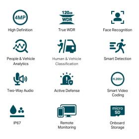 - Разные способы управления камерой и хранения данных: возможность управления камерой через веб‑интерфейс камеры, интерфейс сетевого видеорегистратора, приложение VIGI или программу «Менеджер безопасности VIGI». Видеозаписи можно хранить на карте microSD объёмом до 256 ГБ.