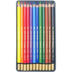 Карандаши акварельные Koh-i-Noor Mondeluz Old Man шестигранные 12 цветов в наборе<br><br>Предназначены для художников, колористов, иллюстраторов и любителей рисования старше трёх лет. Обладают хорошей светостойкостью, смешиваемость до 5 слоёв. При размытии водой получаются мягкие и плавные переходы, придающие рисунку лёгкость и воздушность. В комплекте: чёрный, коричневый, тёмно-серый, синий, фиолетовый, голубой, зелёный, светло-зелёный, красный, оранжевый, песочный, жёлтый.<br>Мягкие, яркие профессиональные карандаши поставляются в металлическом боксе; заточены. Размер упаковки: 183×102×12 мм.