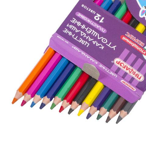 Цветные утолщенные карандаши ПИФАГОР предназначены для детского творчества, а коробка с забавным оформлением порадует как детей дошкольного и младшего школьного возраста, так и взрослых.Набор состоит из 12 цветов: красный, розовый, оранжевый, желтый, зелёный, салатовый, голубой, синий, фиолетовый, серый, коричневый, чёрный. Шестигранная форма сечения корпуса позволяет не скатываться карандашу с поверхности стола во время занятий рисованием. Утолщенный шестигранный корпус удобен для захвата и снижает напряжение кисти при рисовании. Они изготовлены из пластика и имеют лакированный корпус. Качество пластика и исполнения гарантируют легкую заточку. Грифель из натуральных материалов и пигментов диаметром 5 мм обладает повышенной прочностью. Все карандаши заточены и поставляются в картонной упаковке с европодвесом.
