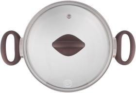 | Особенности | Материал: высококачественная нержавеющая сталь 18/10. Технология: тройное вштампованное, а затем вплавленное дно без воздушных полостей. Материал крышки: термостойкое стекло. Преимущества: эргономичная ручка с внешним покрытием Soft Touch. |