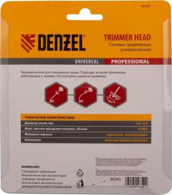 Описание Триммерная головка Denzel 96363 с универсальным креплением стыкуется с большинством марок электро- и бензокос. Толщина режущей лески 2,4 мм. позволяет быстро скашивать газон и в несколько этапов срезать траву выше 20 см.