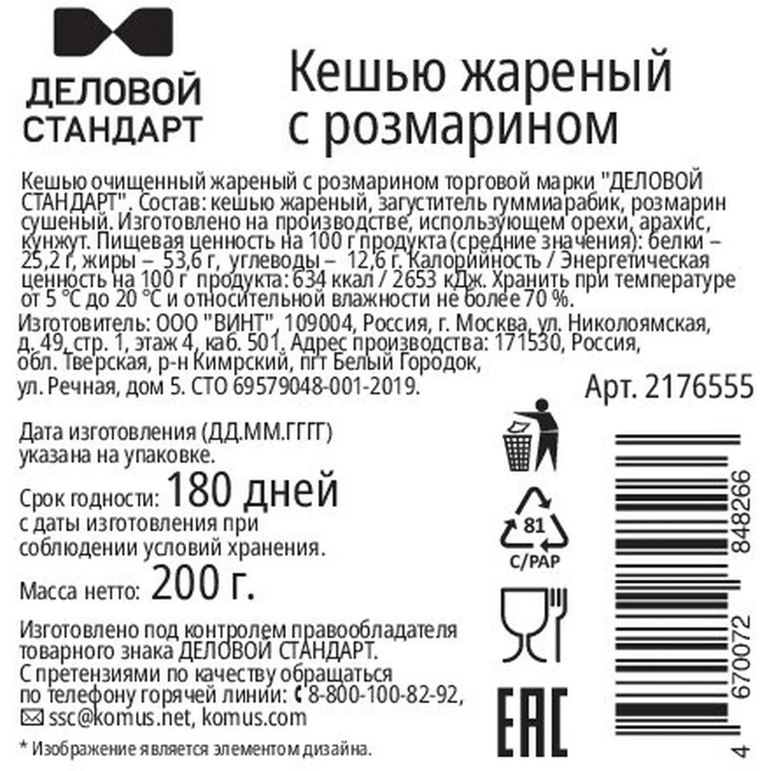 Кешью Деловой Стандарт с розмарином 200 г / 4dealer.ru