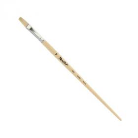 Кисть художественная Roubloff плоская щетина №10<br><br>Плоская кисть «Roubloff» из щетины с длинной ручкой, пропитанной лаком является наиболее оптимальным инструментом для живописной работы с густыми красками в пастозной технике. <br>Алюминиевая обойма надежно собирает очень жесткие, но упругие волоски, которые хорошо наполняются пигментом и отлично отдают краску на поверхность холста. <br>Кисть с такой формой предназначена для работы на крупных участках полотна, так как позволяет наносить широкие и ровные мазки, а также удобна при изображении архитектурных построек и транспортных средств, идеальна для индивидуального изготовления краски требуемого оттенка.